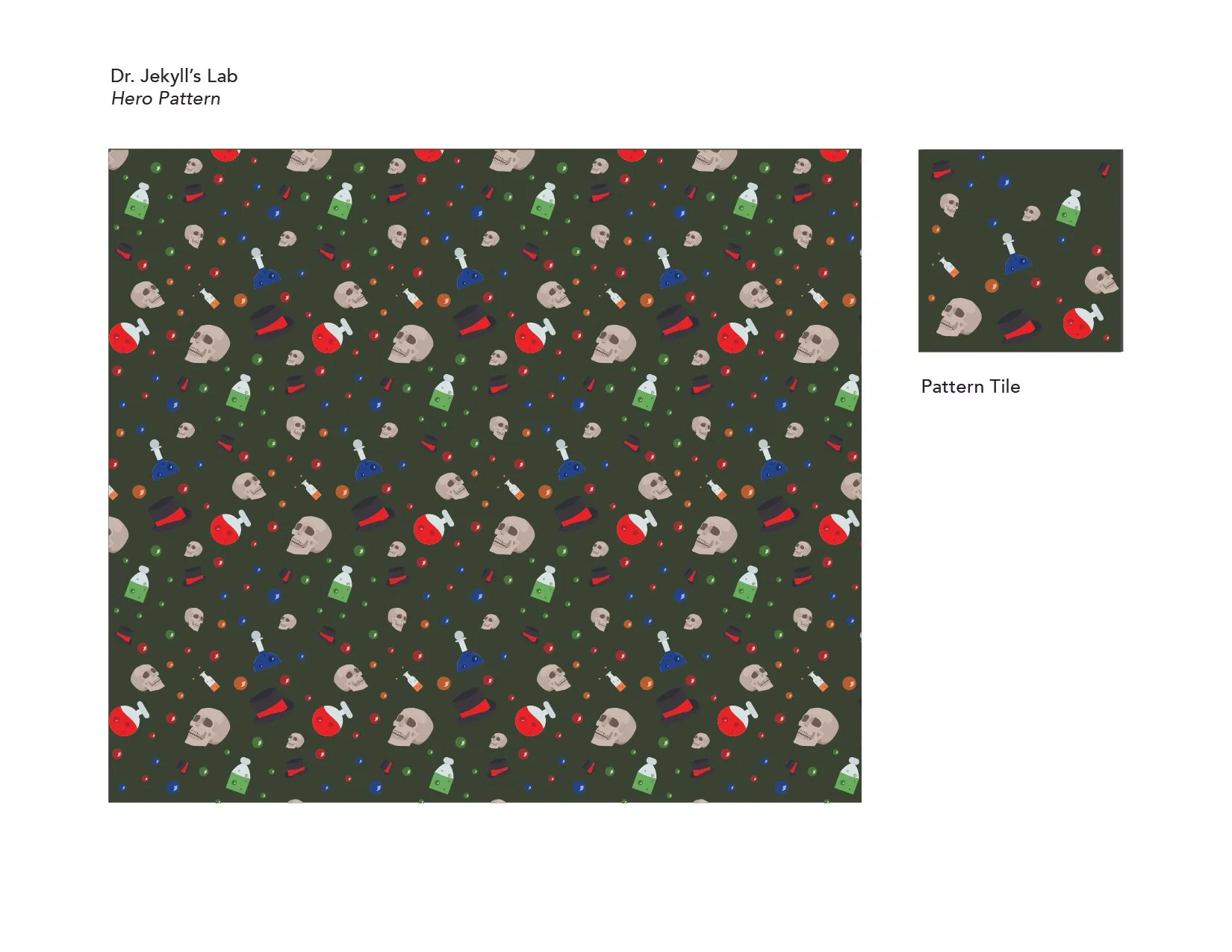 In my typography class we were challenged with redesigning and formating a book of our choice. The deliverables we were asked to create were a soft and hard cover approach. I went with the classic horror story, “The Strange Case of Dr. Jekyll and Mr. Hyde”. I was able to create two typographically driven book cover designs for the text I have chosen. I used Illustrator and InDesign for all typographic elements. The purpose of this project was to practice working with display typography. In addition, I developed pattern collection that could be used on collateral and merch for the series